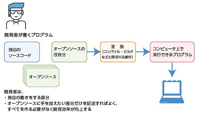 こうしたオープンソースの取り組みにより、自由に使える高品質なソースコードが提供されるようになった結果、より複雑なソフトウェアを短期間で作れるようになりました。