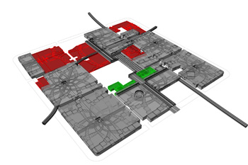 これはつまり、郊外にはマンハッタンのような大きなビルが建ち並び、中心に行けば行くほど、いわゆる小さな集落のようになっていくことを意味します。これはたとえば日本でも、平安時代から城を中心に碁盤の目状に町を造っていった、いわゆる現在までの「都市」とは大きく異なります。こうすることによって、あたかも集落のような豊かな都市空間を、人工の都市空間でありながらも生み出すことができるのではないかと考えています。