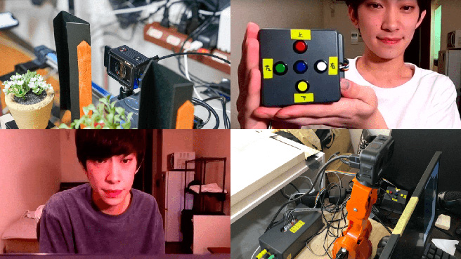 また、劇団ノーミーツのこれまでの公演は「一度も会わずに公演をする」がコンセプトなので、たとえば部屋の明るさをPhilips Hueで操作したり、画面の切り替わりに使うカメラの操作を遠隔で動かしたり、Raspberry Piで役者が弄れるコントローラを作ったり、ロボットアームで動かしたりなど、そういったハードウェアエンジニアも関わっています。