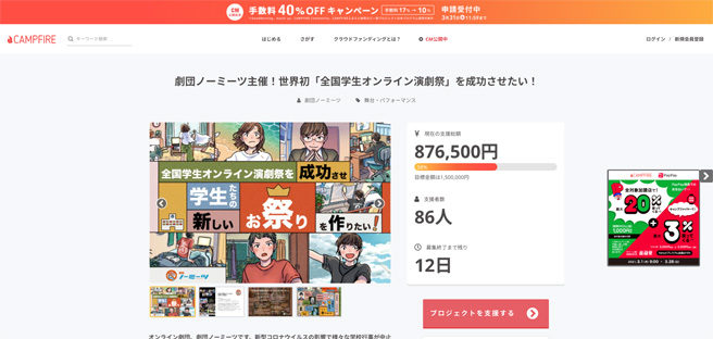 そんな「劇団ノーミーツ」が、全国の学生たちがフルリモートで作り上げた演劇作品を上演する全国大会「全国学生オンライン演劇祭」を開催するために、クラウドファンディングを実施しています。今後の新しい劇の形を進めていくためにも、ぜひこちらもご覧ください。